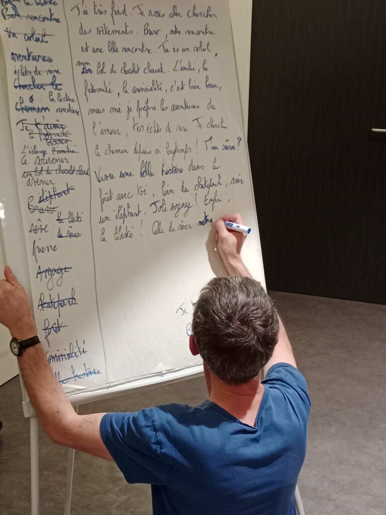 Les mardi 14, mercredi 15 et jeudi 16 octobre, Benoît Broyart a poursuivi les ateliers d’écriture collaborative avec les adultes et a livré quelques impressions :